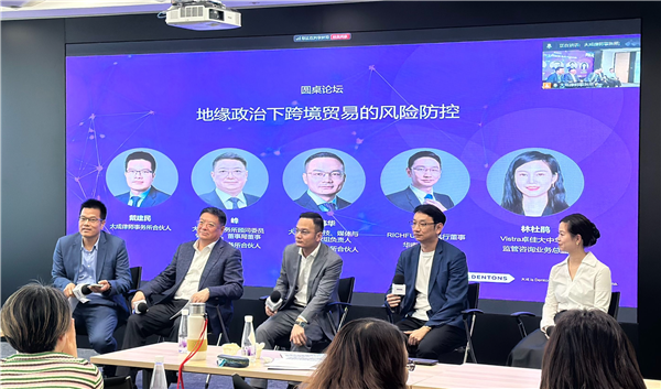 在圓桌討論環(huán)節(jié),大成律師事務(wù)所合伙人戴健民擔(dān)任主持,與Vistra卓佳、大成律所多位專(zhuān)家就"地緣政治下跨境貿(mào)易的風(fēng)險(xiǎn)防控"展開(kāi)深度對(duì)話(huà)。