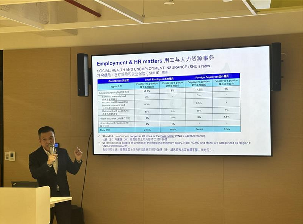 Vistra卓佳(越南)稅務(wù)咨詢副總監(jiān)Robert Nguyen(阮自清平)為考察團(tuán)分享在越南營(yíng)商的本地洞察
