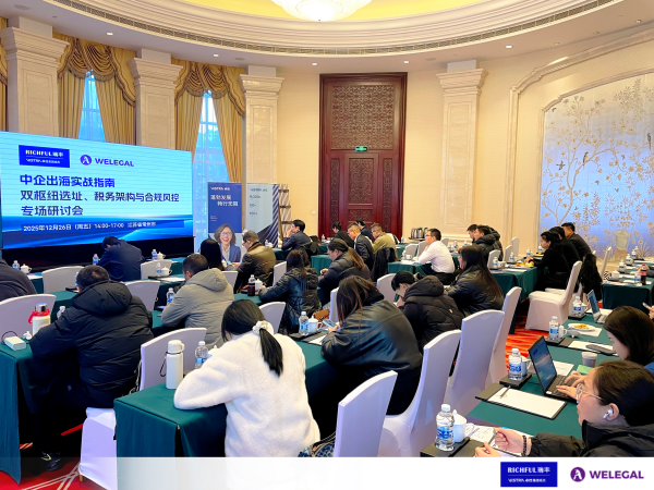 12月26日下午,Vistra卓佳集團成員RICHFUL瑞豐、WELEGAL法盟聯合舉辦的“中企出海實戰指南:雙樞紐選址、稅務架構與合規風控”新能源企業專場研討會在常州舉行。嘉賓們通過主題分享、圓桌對話,講解了雙樞紐選址、稅務架構與合規風控等核心議題,為中國企業出海提供了重要的合規參考和實務指引。數十家常州及周邊城市的新能源及醫療器械企業的法務負責人及財務負責人參加了研討會,與現場專家們積極互動。